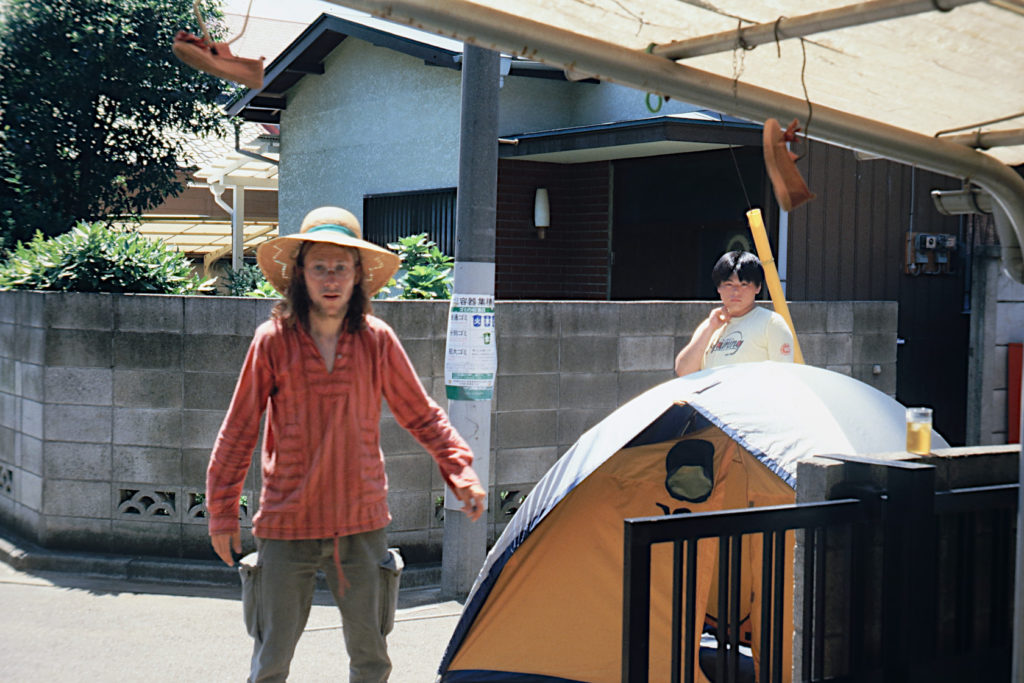 Das Foto zeigt mich wenig vorteilhaft mit Hut, der Hitze wegen (und einen jungen Nachbarn, der uns auch auf den Fuji begleitete) nach fast getaner Arbeit.