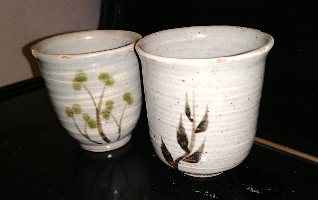 Anmerkung: Meine Zeit im Zivildienst, die ich in einer Töpferei für behinderte Menschen verbrachte, hatte mich für das Töpferhandwerk in Japan sensibilisiert. Die Technik war jedenfalls sehr beeindruckend. Das geschenkte Geschirr wurde später nach Deutschland geschickt, erwies sich aber als wenig haltbar, so dass im täglichen Gebrauch leider die Stücke immer weniger wurden.