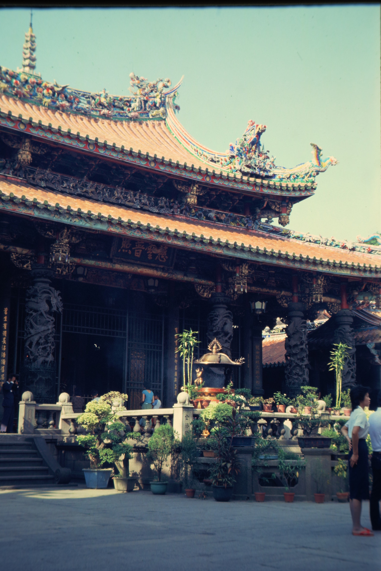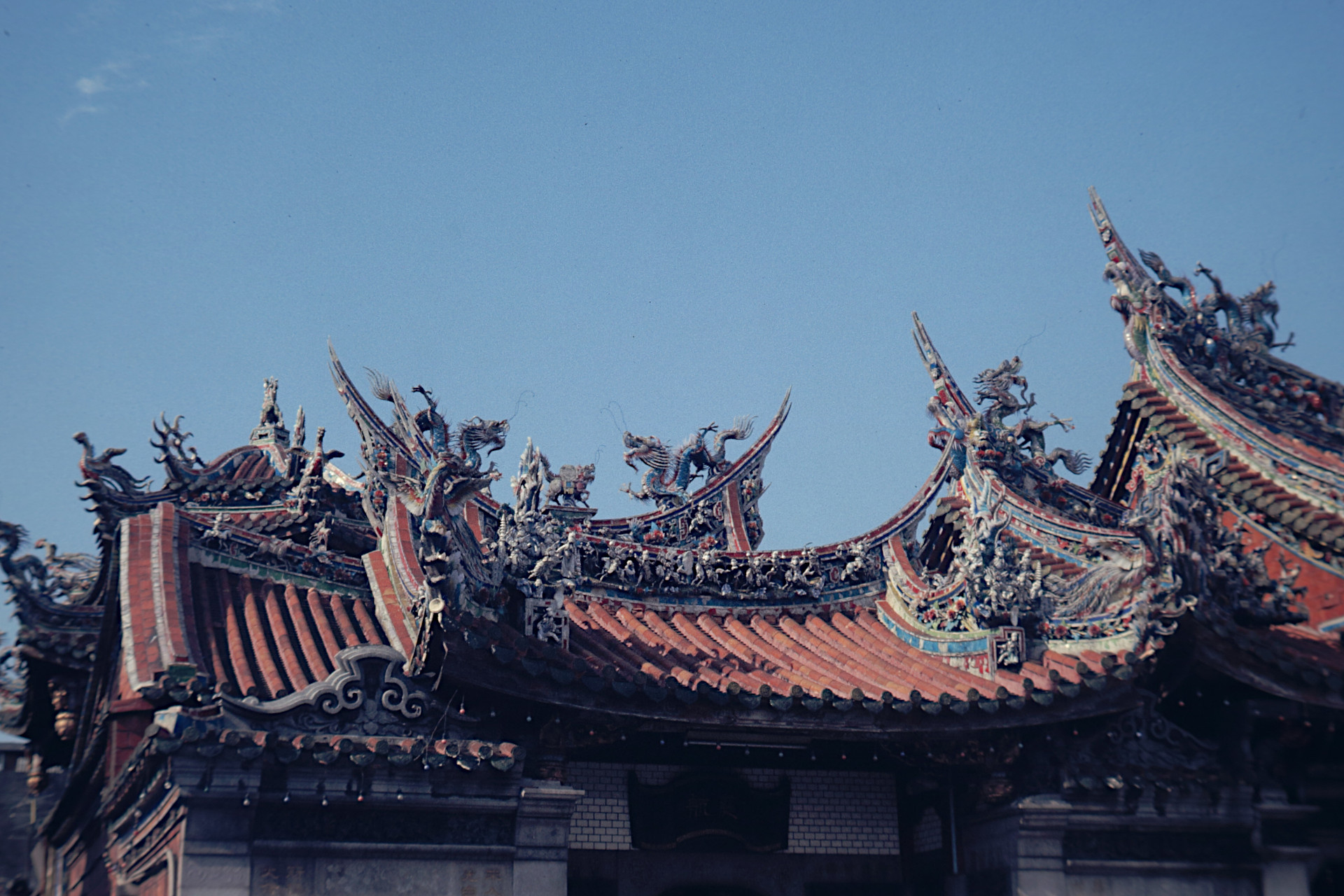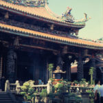 3. Lungshan-Temple: Nach einigem Herumirren endlich gefunden. Ein wahnsinns Dach mit lauter Drachen – und bunt.