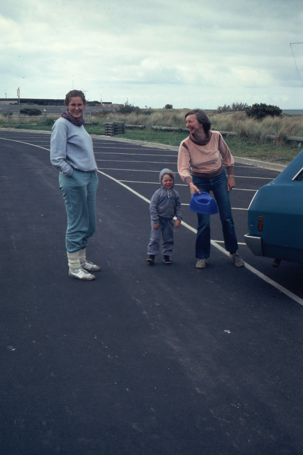 Das Foto zeigt Anne mit Karin und Jason, aufgenommen vermutlich am Vortag in Queenscliff.