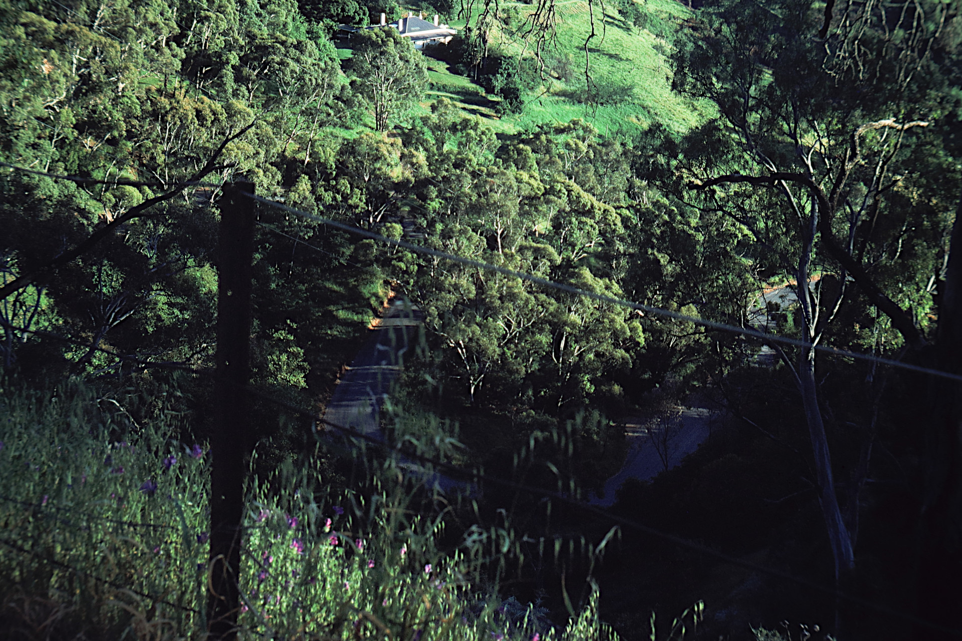 Anmerkung: Das Bild zeigt die Corkscrew Road (=Korkenzieher Straße) , die sich durch die Hügel windet.