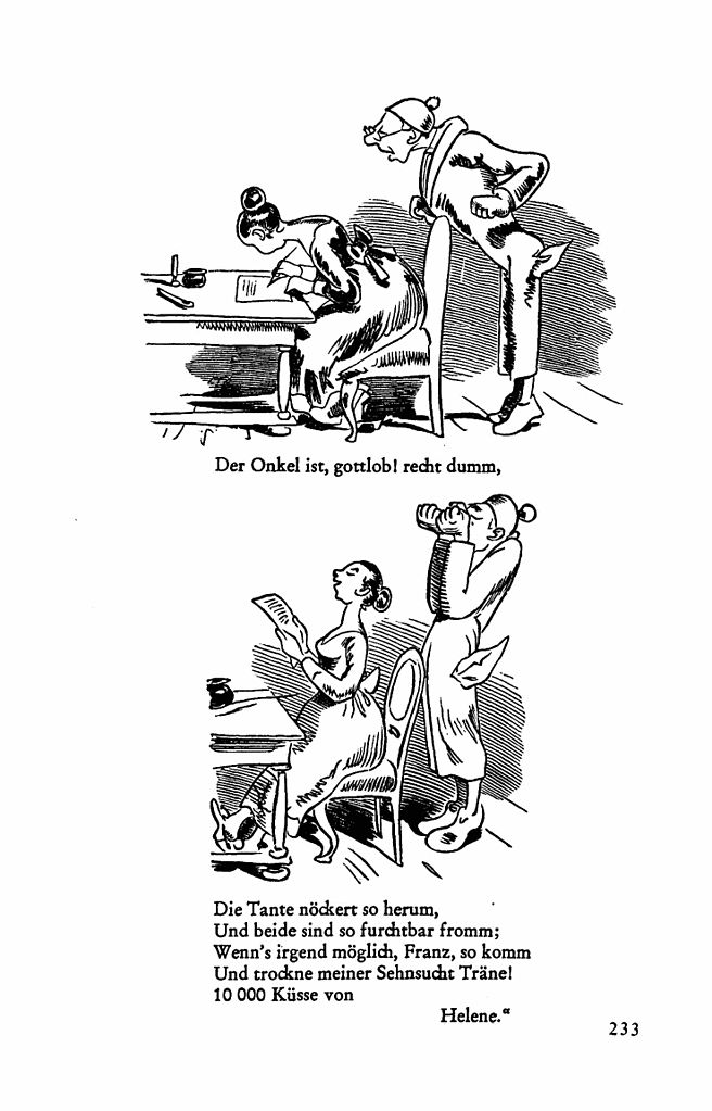 Wilhelm Busch mag ich noch heute. Das Bild zeigt eine Seite aus der „Frommen Helene„, deren Lektüre ich gerne empfehle.