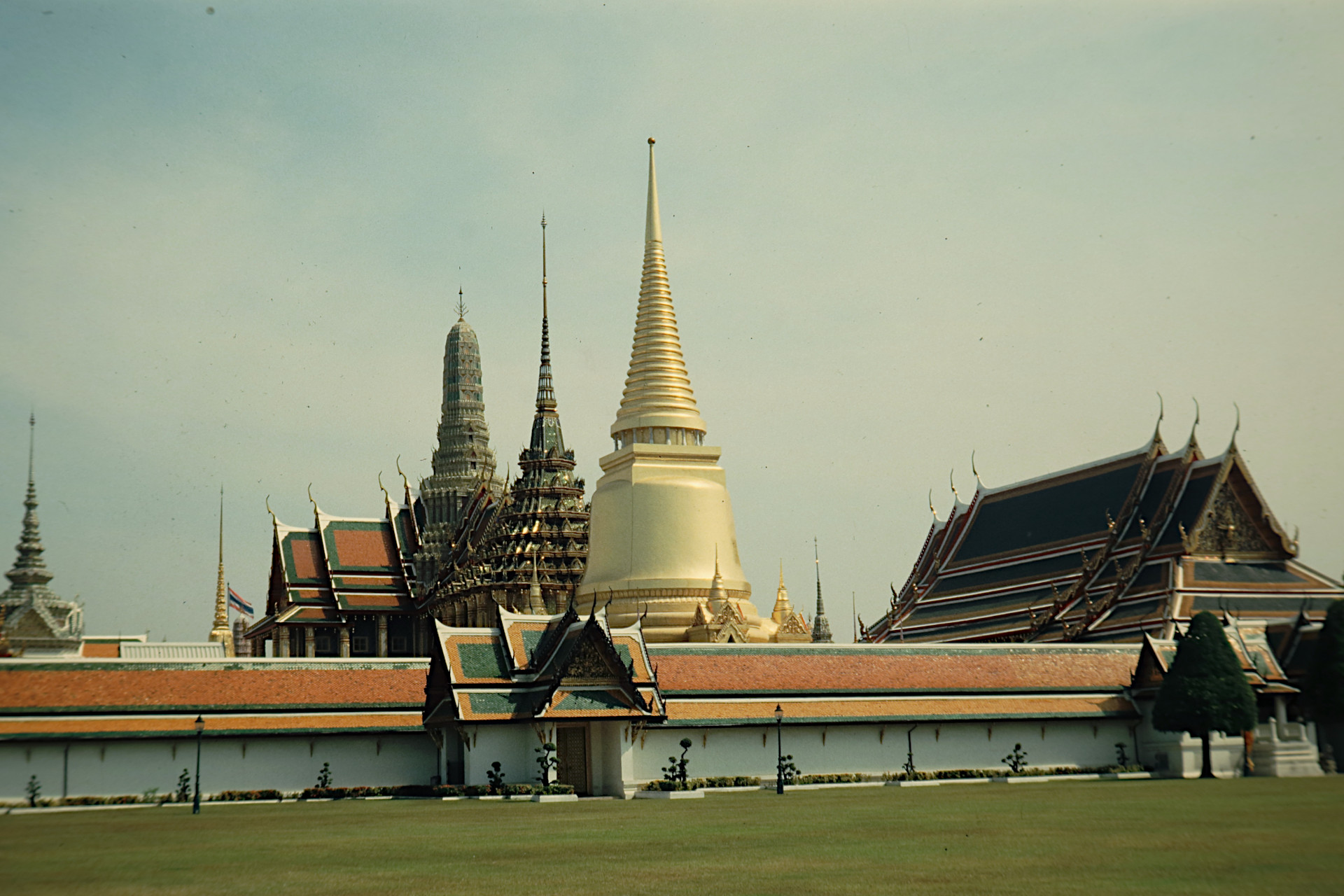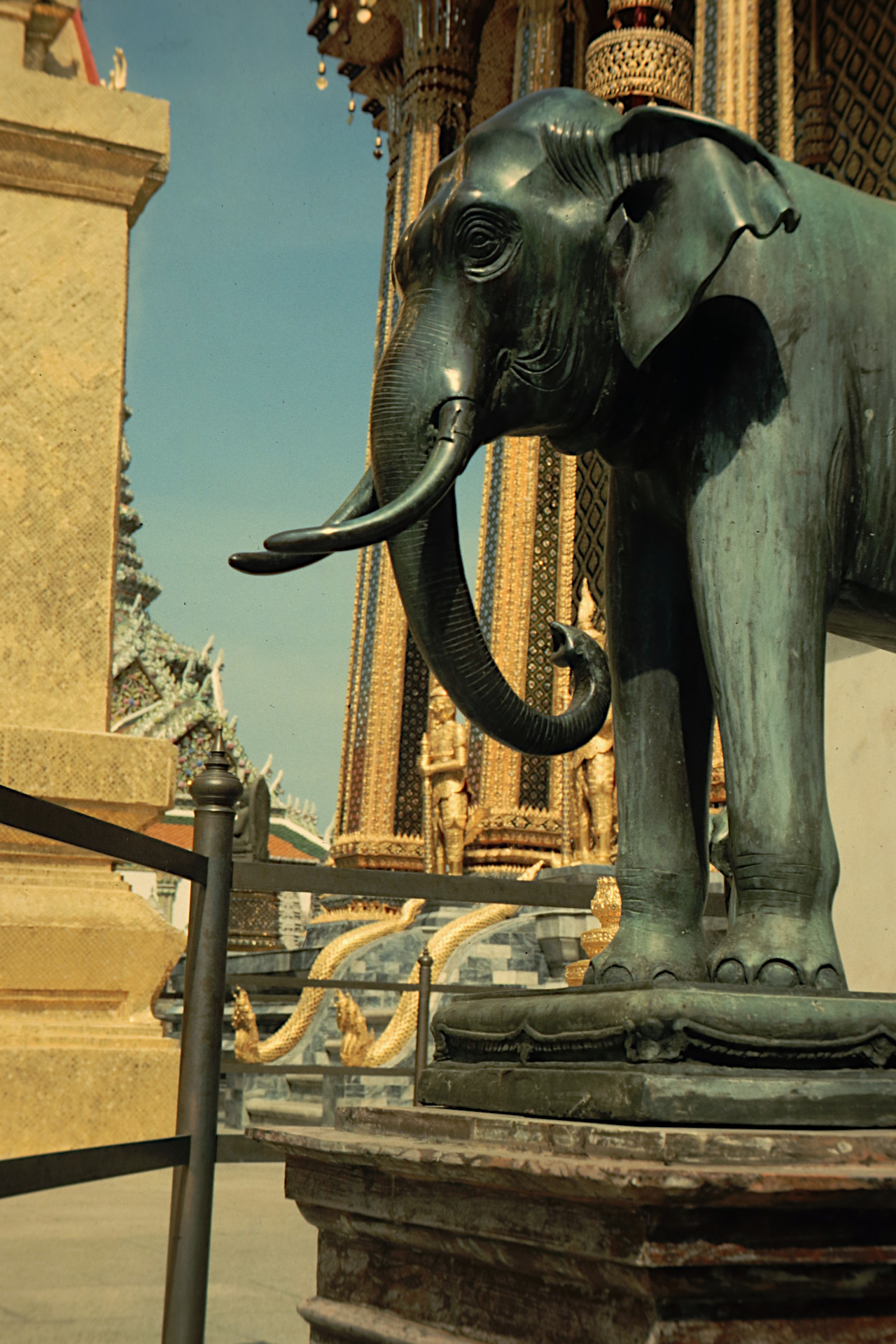 (Ekke) Zum Goethe-Institut in den Zeitungen geblättert, aus Ulk Immobilien geschaut. Nichts los. Dann zum Grand Palace – Puh, dieses Gold überall, absoluter Wahnsinn – die kleinen Messingelefanten haben uns am besten gefallen. What Poh war nur teuer, aber nicht so schön, wenn gleich ein richtiger Tempel. Dann auf dem Markt eine Kokosnuss für drei Baht erstanden. Puh, eh wir die auf hatten. Hat ziemlich satt gemacht. Kleines Heft und zwei Kulis für die Insel und das Buch gekauft.