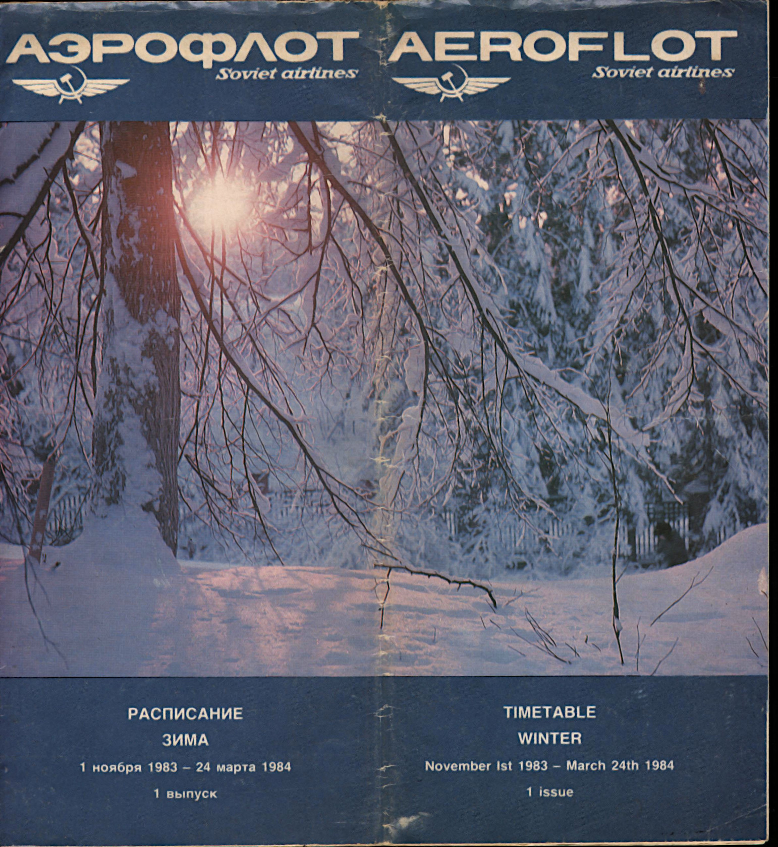 Das Bild zeigt die Vorder- und Rückseite des Aeroflot-Flugplans für den Winter 1983/84.