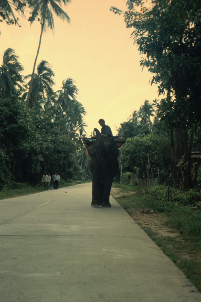 Das Foto zeigt einen der Elefanten der Insel, die überwiegend zum Arbeiten eingesetzt wurden. Auch diese Aufnahme entstand auf der Motorradtour.