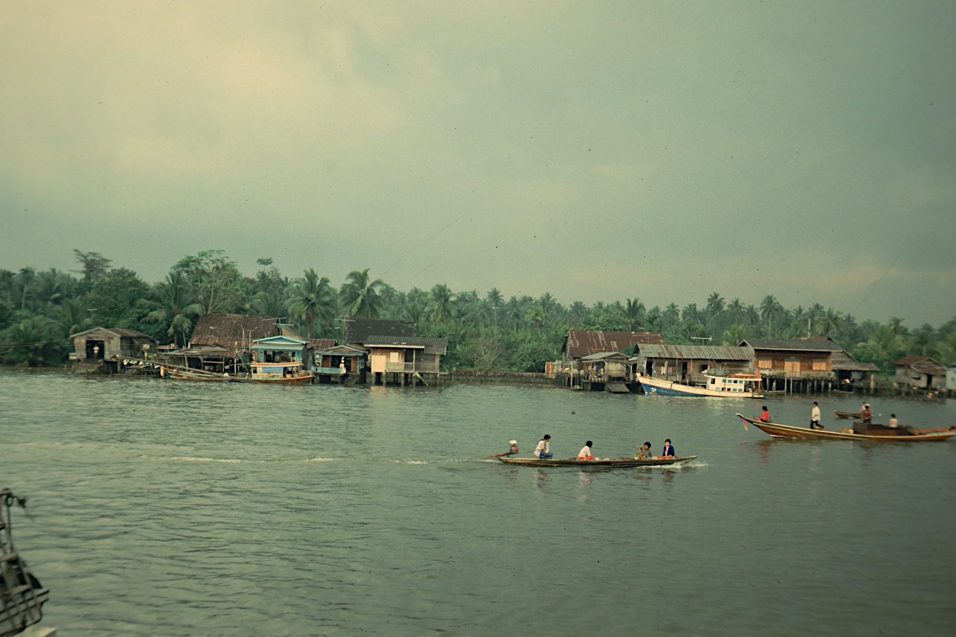 Das Foto zeigt die Szenerie im Tapi River bei Surat Thani, wie wir sie bei der Hinfahrt erlebt hatten. Jetzt kamen wir mitten in der Nacht an, da war es natürlich dunkel.