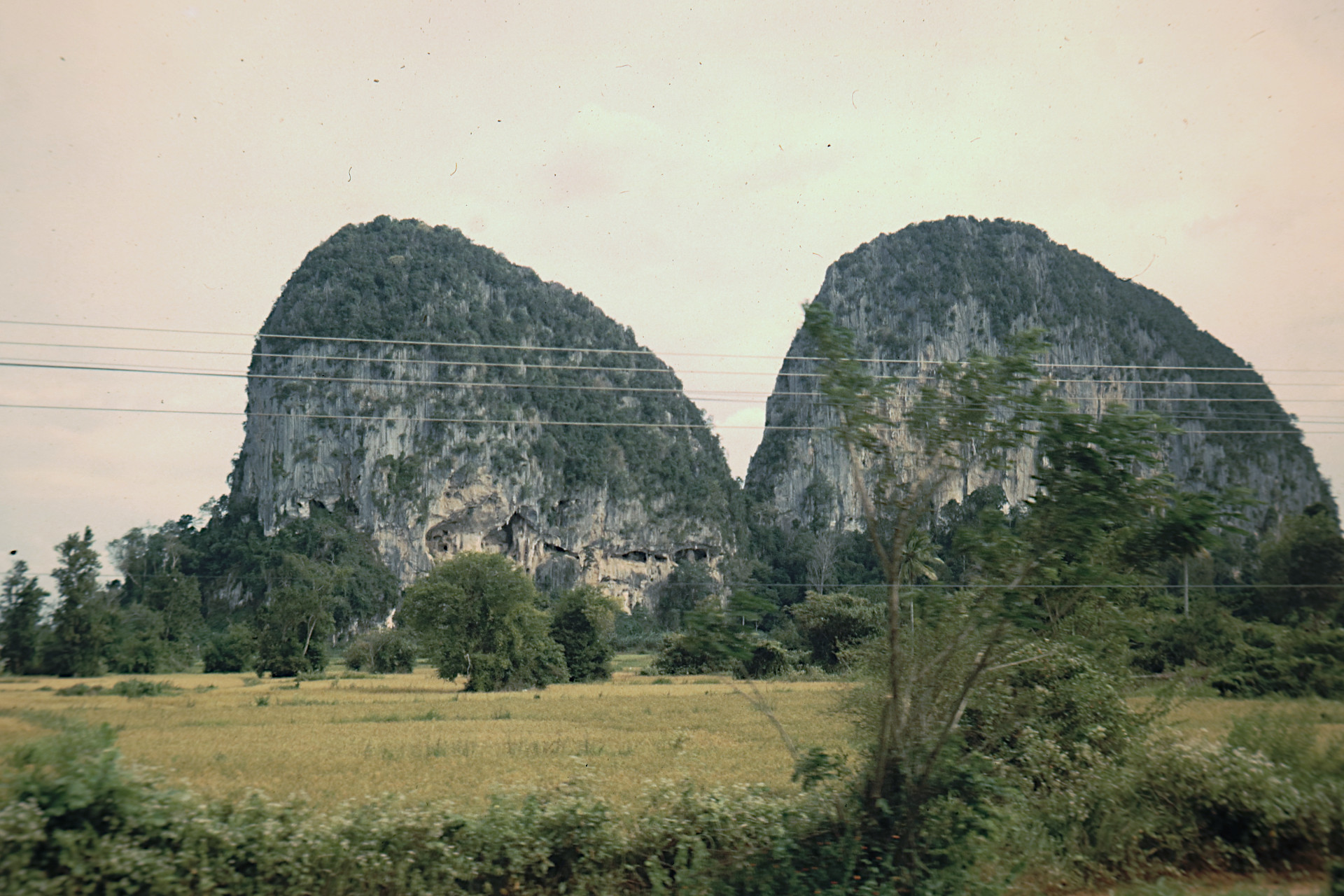 Das Foto zeigt eine typische tropische Karstlandschaft, einen sogenannten Kegel- oder Turmkarst, also Kalkgebirge, welches sich durch die Einwirkung von Huminsäure auflöst.