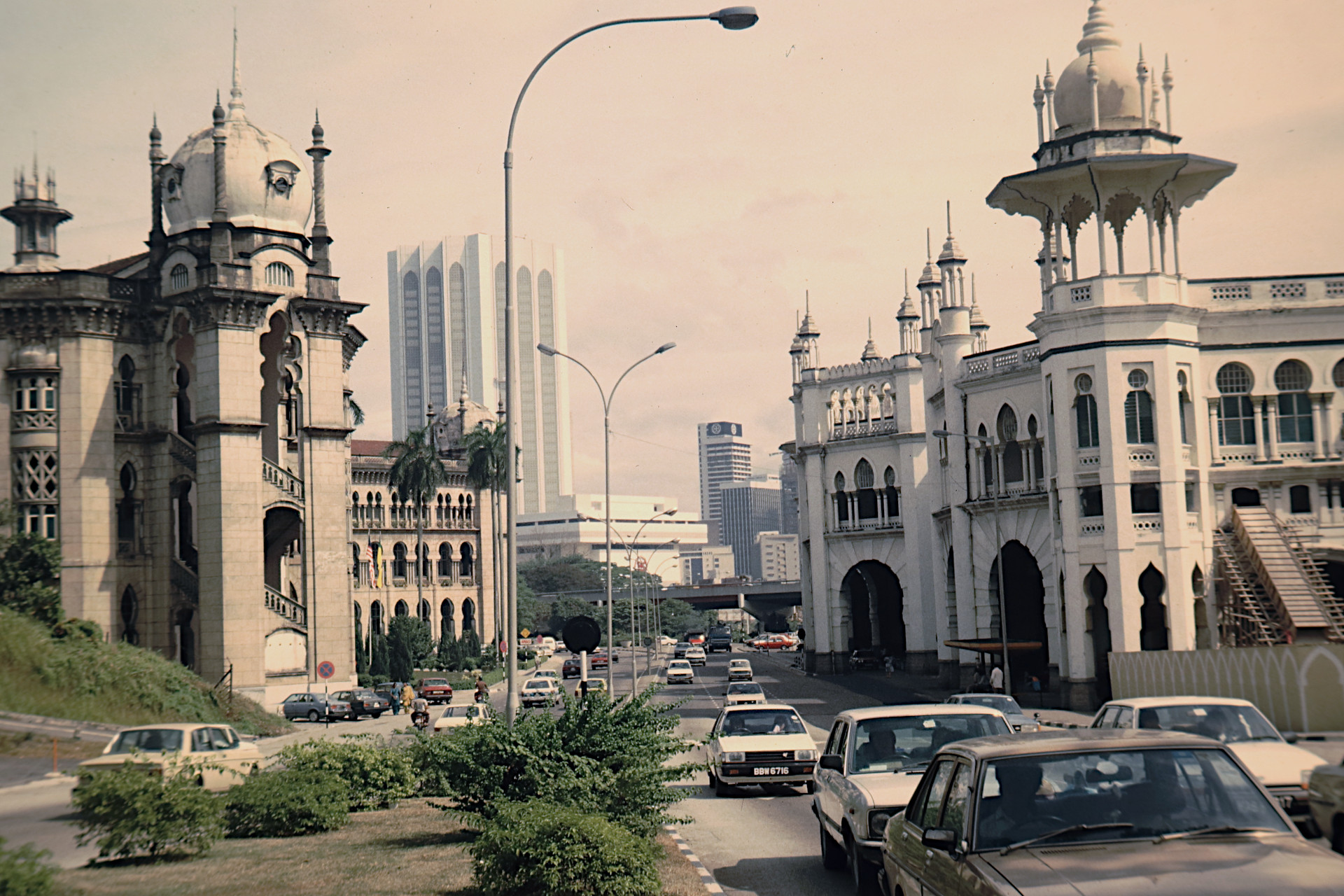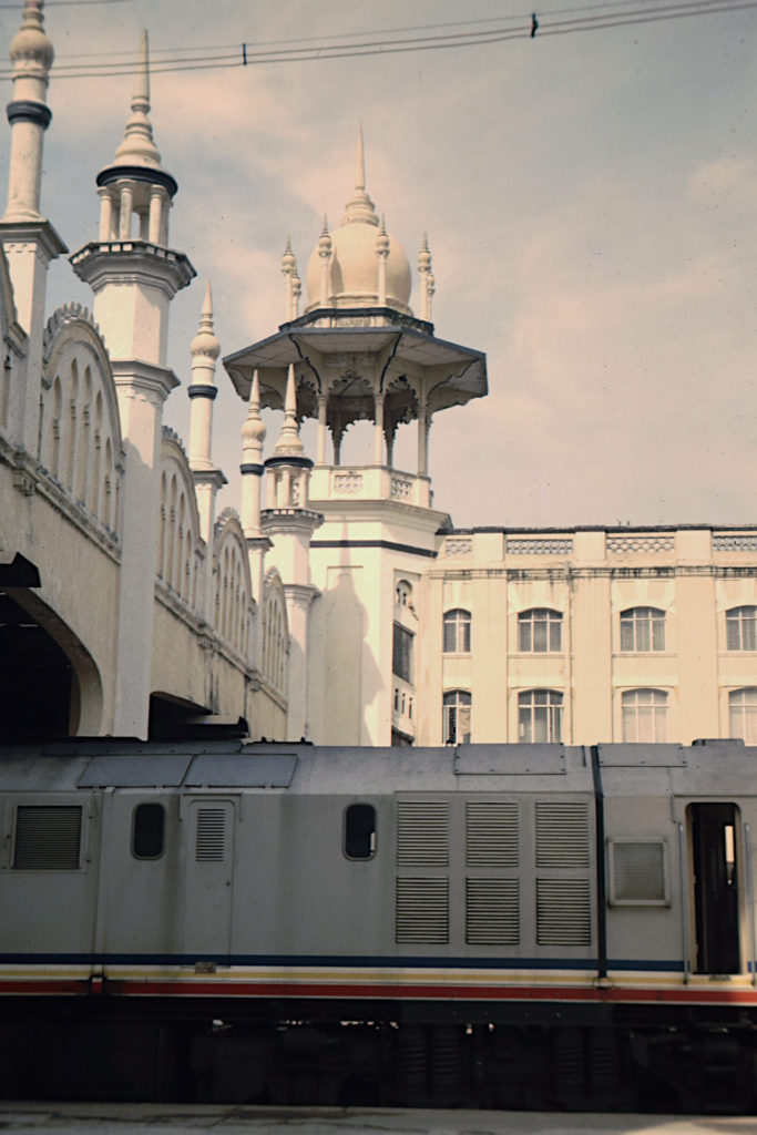 Die Fotos zeigen den damals aktuellen heute alten Bahnhof Kuala Lumpur, einem pittoresken Gebäude von 1910.