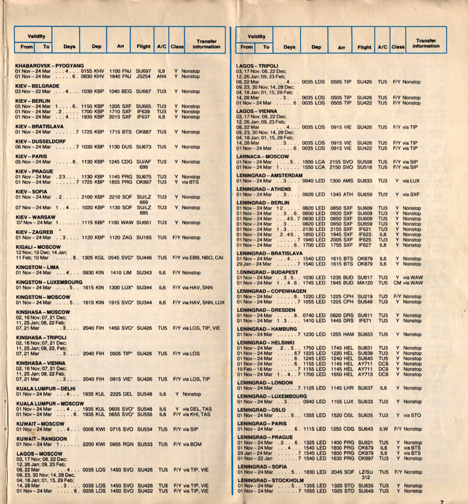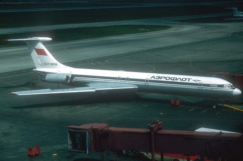 Wir flogen mit Aeroflot, die Fluggesellschaft trug den morbiden Charme der UdSSR und entsprechend war das Aussehen. Wer den Film 2001 kennt, erinnert sich vielleicht an die Szene auf der Raumstation, wo Floyd auf die Gruppe sowjetischer Wissenschaftler trifft, so etwa sah das aus. Das Fluggerät war eine Iljushin 62, eines der schönsten Verkehrsflugzeuge seiner Zeit. Ich verlinke zwei Youtube-Videos, welche das Anlassen der Triebwerke und den Start zeigen, Kopfhörer auf und zuhören, so etwas gibt es nie wieder. Die Älteren unter Euch werden vielleicht die Titelmusik der TV-Serie „Raumpatrouille Orion“ unterlegen wollen…
