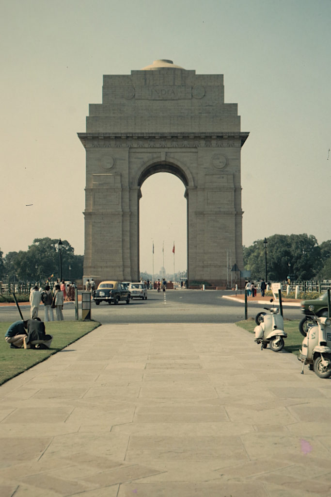 Frühstück gehabt, heute hat alles irgendwie zu! Keine Deutsche Welle mehr zu bekommen. Nachmittags zum India-Gate gelaufen und nach dieser De-Luxe-Bus-Station gesucht – nichts! Völlig entnervt und total kaputt zurück gekommen, noch Infos bei India Airl. eingeholt, was gegessen und tatsächlich noch 5Rs für Ekkes Morgendusche aufgespart. Am India Gate liefen die Vorbereitungen für die Parade. Sichtblenden und Tribünen. Ich kann verzichten. Entweder viel Geld ausgeben für einen „Logen-Platz“ oder Gestoße und Totgedrücke in Kauf nehmen. Abends dann noch ein USSR-Info-Zentrum gefunden.