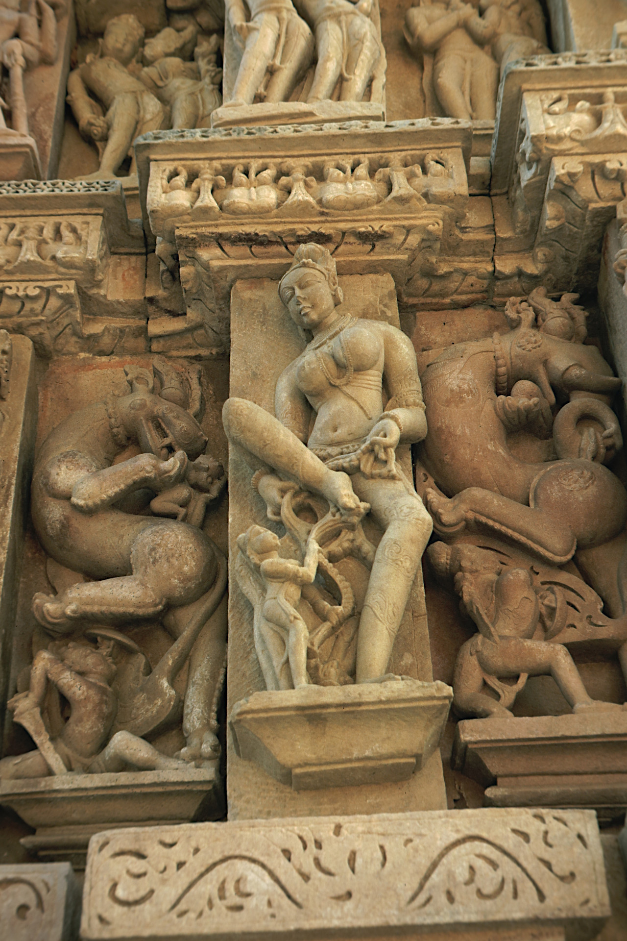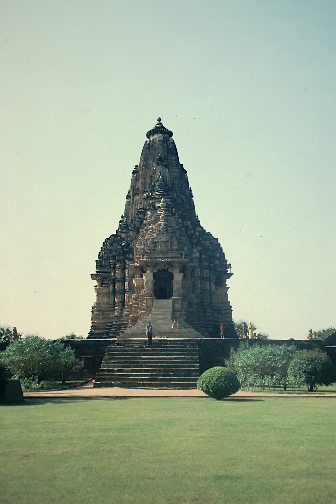 Mittwoch 25.1.84, Khajuraho (Anne) Eigentlich wollten wir heute los Richtung Varanasi, aber Ekke + mir gings nicht so gut. So legten wir einen Ruhetag mit Tee + Toast ein. Als einziges haben wir Geld getauscht (Chaos wie immer) und nachmittags für 2 Std. im Park gesessen und Tempel wirken lassen. Fürchterliche Deutsche Reisegruppe unterwegs. Abends geplaudert und Pläne geschmiedet, naja morgen geht es los, weiter.