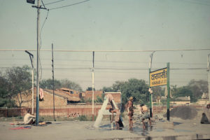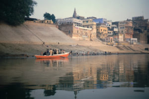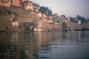 Anmerkung: Die Bootsfahrt war ein Abenteuer. Zuerst die intensiven Preisverhandlungen, wobei beiden Seiten klar war, dass das zu handelnde Gut durch Zeitablauf wertlos werden würde. Dann ging es los. Erst bei eintretender Helligkeit wurde die heilige Stimmung durch die Realität ersetzt. Der Fluss, völlig verdreckt, das Boot undicht. Wir hatten Sorge unversehrt ans Ufer zurück zu gelangen, aber es klappte. Ein Bekannter in Deutschland, den wir später im Jahr kennen lernten, fuhr regelmäßig nach Indien und brachte stets heiliges Gangeswasser mit zurück. Dieses wurde einer Medizin gleich schlückchenweise bei allerlei Erkrankungen genommen. Einmal als Anne ziemlich krank war, wollte er seinen Schatz mit ihr teilen. Anne lehnte dankend ab, die Erinnerung an dieses Wasser brachte in ihr den Gedanken nach oben, „wenn ich das trinke, sterbe ich“.