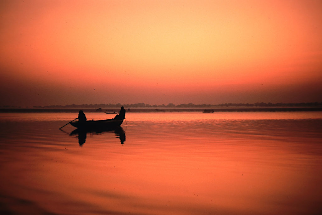 (Anne) Um 5 Uhr aufgewacht, aufgestanden, eingepackt und durch die friedliche Stadt zum Flussufer gelaufen und ein Boot gemietet. Wahnsinnig schöne Sonnenaufgangsstimmung, mit Nebel. Viele Gläubige badeten um diese Zeit. Nur wenige Scheiterhaufen, aber jede Menge Abwässer und totes Getier -> 100m weiter trinkende Menschen. Als die Sonne richtig raus war wimmelte es von Touristen. Frühstück, bezahlt und zum Bahnhof. Das schlimmste Chaos was wir bis dahin hatten. Wie durch höhere Führung den richtigen Zug + Abteil gefunden. Erst für 4 Std. alleine (mit Ausnahme des gaffenden Schaffners), dann 4 Inder, naja. Als die endlich weg waren, kamen 2 dicke rülpsende widerwärtige Andere. Die ganze Nacht nur schlecht geschlafen am Morgen gefroren.