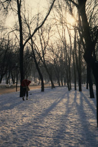 (Anne) Die Abfertigung in Delhi war grauenhaft langwierig! Wir waren fürchterlich geschafft. Gutes Essen im Flugzeug und etwas geschlafen. In Moskau war es bitterkalt. Ich dachte nicht, dass es so kalt sein könnte. Das Hotel geht auf unsere Kosten (100 DM), Nicht gerade nobles Zimmer, nun denn. Mit dem Bus und der U-Bahn in die Stadt zum Roten Platz. Irre schöne klare Stimmung. Brot gekauft, zur Lenin-Bibliothek. Nach Ausweisaustellung zur Musikabteilung. 1 Std. gesucht jedoch nichts dabei, zurück gelaufen. Sehr schön, aber zu kalt!!! Fast verfahren, nun doch gefunden. Heißes Bad und heißen Kaffee. Morgen also nach Hause.