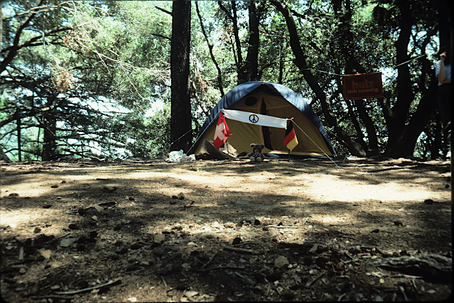 über eine halbe Stunde auf den Bus gewartet. In Mill Valley erstmal eingekauft. Das Trampen funktionierte und nach 10 Min. waren wir weg. Der Typ war lieb und brachte uns direkt zum Campground, auf dem wir oh Wunder nur 1$ pro Nacht für uns zu bezahlen hatten. Wir lernten einen Schweizer „Grünen“ kennen, mit dem wir uns den Platz teilen wollen. Die Typen sind urig (Einer schläft in einer Plastiktüte). Abends kamen noch zwei aus SF.