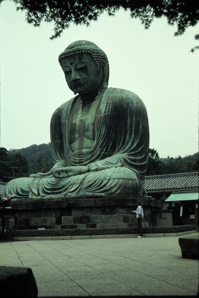 Das Foto zeigt Anne vor dem Großen Budda von Kamakura. Wir waren sehr früh da und völlig alleine, so dass ich erst ein Foto ohne jeden Menschen machen konnte und dann noch eines mit Anne machte, weil ich dachte, man würde die tatsächliche Größe kaum erahnen können. Aus den Beschreibungen entnahmen wir, dass der Tempel in dem der Budda stand bei einem Tsunami zerstört worden war und der Budda selbst durch das Wasser über eine größere Entfernung ins Landesinnere transportiert worden sei. Erst bei den Bilder des Tsunamis 2011, wurde Anne und mir die Tragweite dieser Erzählung bewusst. Bis dahin hatten wir keinerlei Vorstellung von den Kräften die da am Werk sind.