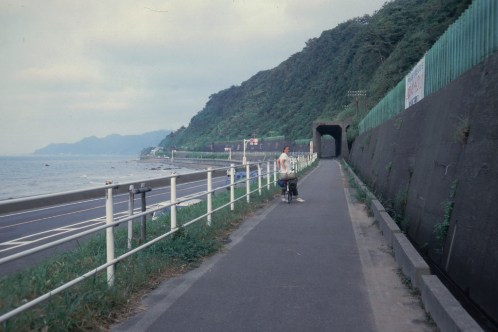 Home » Japan • Reise » Tag 61: Ouzo – nach Itoigawa Tag 61: Ouzo – nach Itoigawa 12. August 2023 Ekkehard Domning Japan, Reise Freitag 12.8.1983 Ouzo – nach Itoigawa(Ekke) Erst durch die Ebene, dann steil an der Küste entlang, später auf einem Radweg der die ausgediente Eisenbahntrasse entlanglief, gefahren, recht eben, viele tolle Tunnel „Ω“. Müde unter einer Brücke gezeltet.